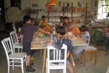 Töpferkurse in der gemütlichen Werkstatt mit offenem Kaminfeuer im Winter.